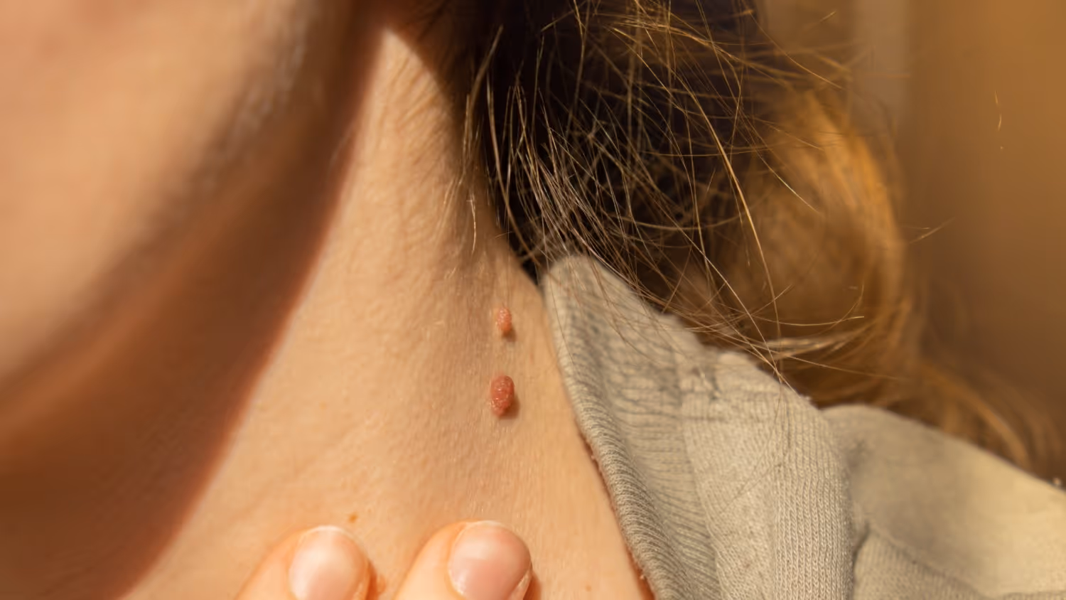 Small, soft, harmless skin growths often appear on the neck, underarms, or other areas where skin rubs together.