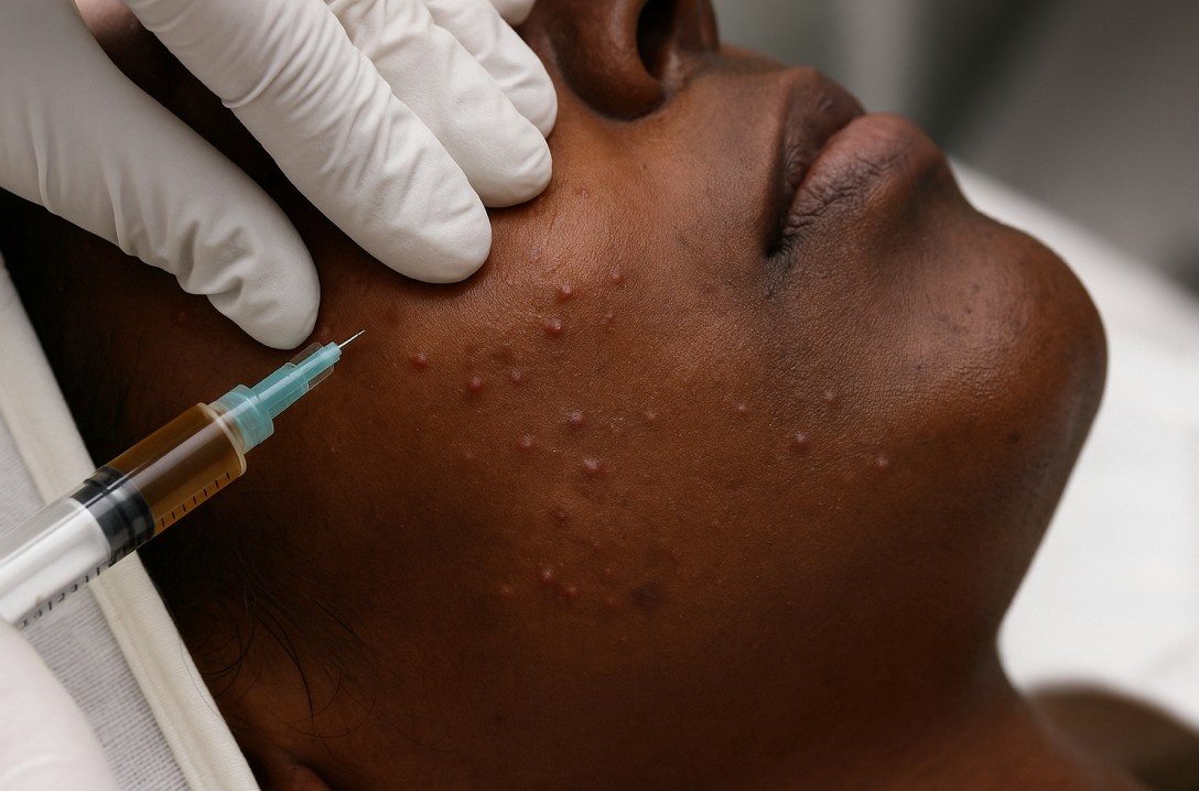 Used for painful cystic acne or nodules, this quick in-clinic procedure delivers targeted anti-inflammatory medication to reduce swelling and prevent scarring.
