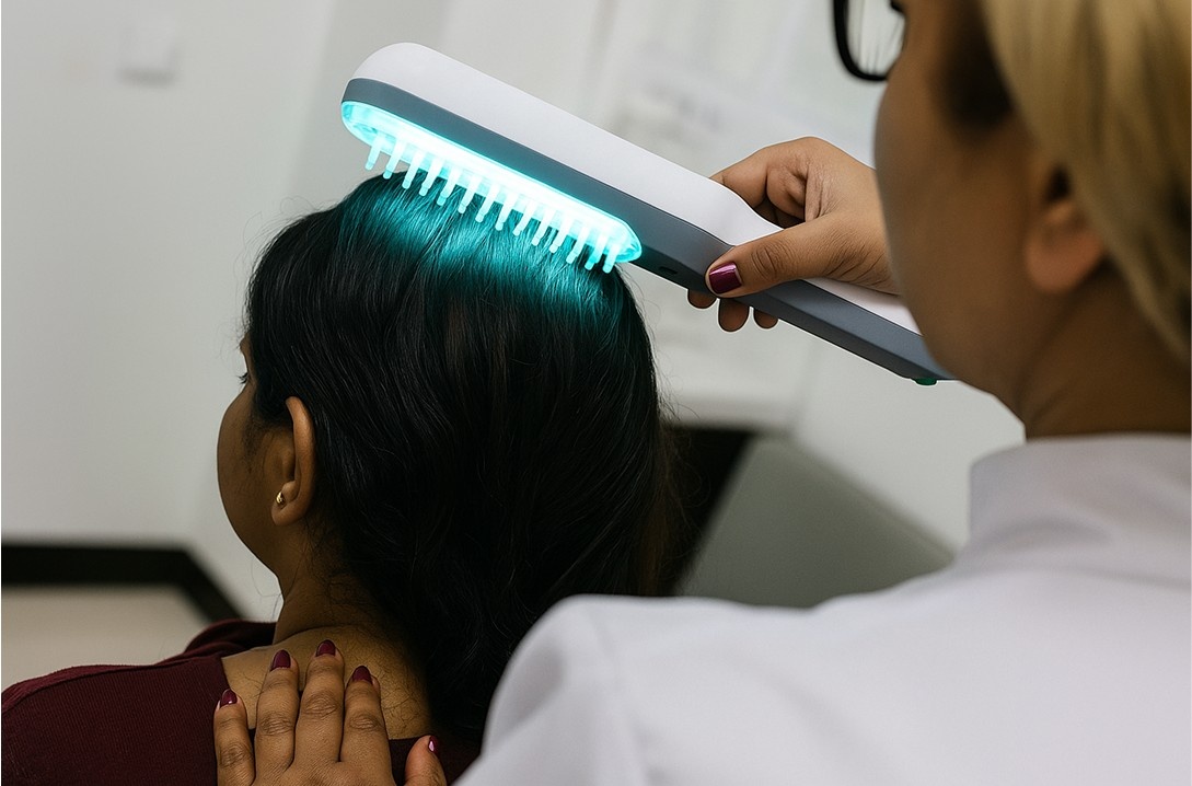 Low-Level Laser Therapy (LLLT): Gentle laser light is used to improve scalp circulation, energise follicles, and support healthier, denser hair growth.